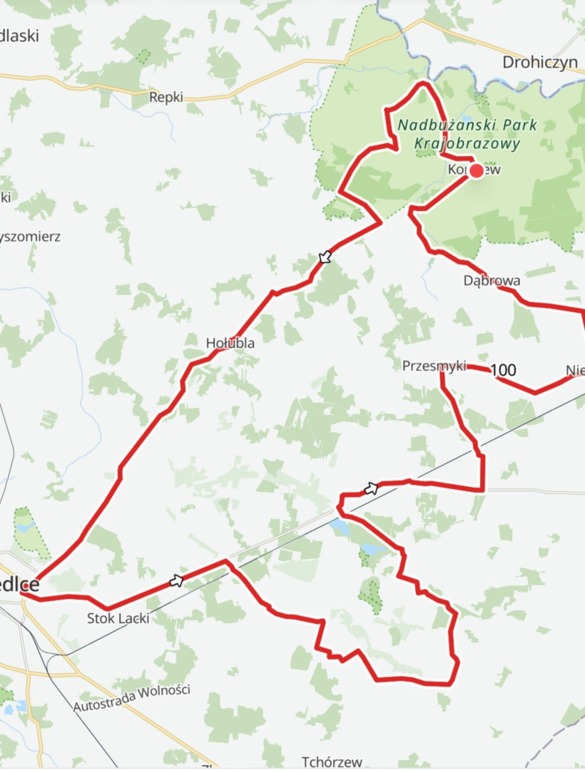 Treningowo-rekreacyjna pętla przez południowe Podlasie – łączy Nadbużański Park Krajobrazowy z Siedlcami, biegnąc przez ciche wsie, pola i doliny. Większość trasy wiedzie drogami powiatowymi i wojewódzkimi, o dobrym lub bardzo dobrym asfalcie. Teren jest płaski z delikatnymi wzniesieniami.Ciekawe miejsca na trasie, to między innymi: