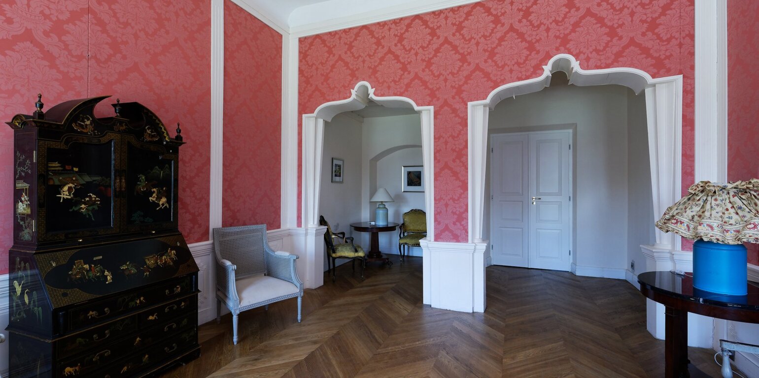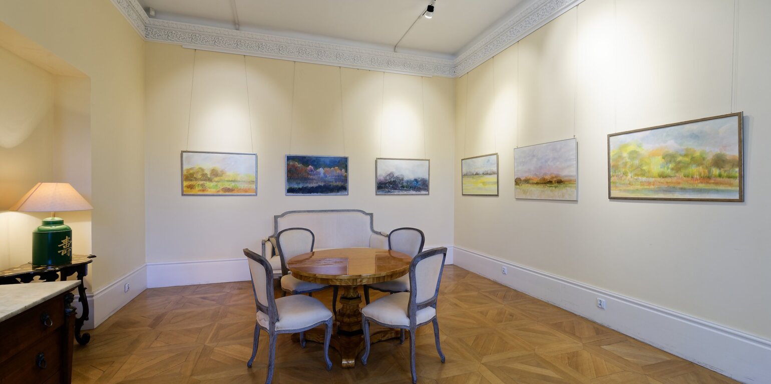 Na lewo od sali balowej mieszczą się dwie sale niebieskie z wystawami tymczasowymi. Z kolei na wprost w ciepłych miesiącach roku można wyjść na taras oraz parter ogrodowy.